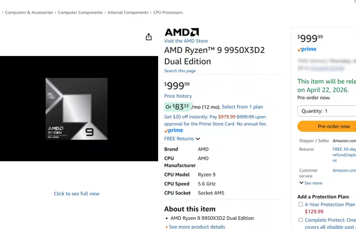 AMD Ryzen 9 9950X3D2, prezzo più alto su Amazon rispetto al listino ufficiale