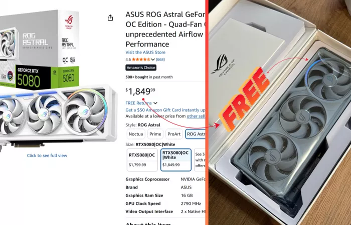 Errore Amazon: cliente riceve e può tenere una ROG Astral RTX 5080 dopo rimborso