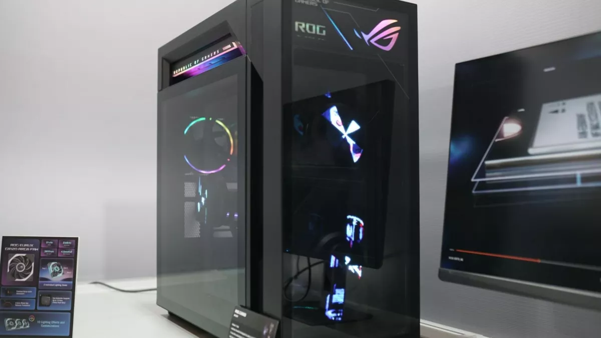 Al CES di Las Vegas, Asus ha presentato il ROG G1000, un PC gaming che si distingue per il suo design coperto di ologrammi e componenti di fascia alta. Il case da 104 litri è dotato di pannelli laterali in vetro e ventole frontali che proiettano spettacolari effetti luminosi, controllabili tramite il software Armoury Create. Un pulsante dedicato, chiamato "Anime Holo", consente di gestire l'illuminazione con un semplice tocco.