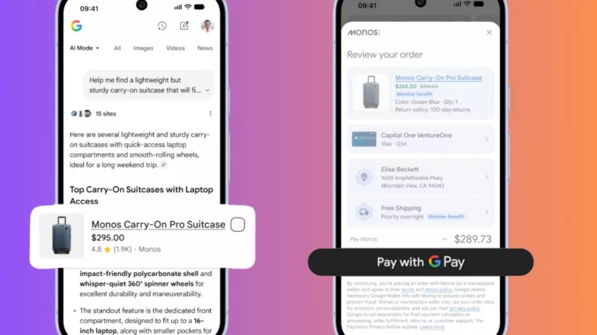 Quando un utente cerca un prodotto, come una "borsa con tracolla in pelle e catena d'argento" su Google Search, verranno presentate raccomandazioni in AI Mode con un pulsante per l'acquisto diretto. Gli utenti possono completare l'acquisto tramite Google Pay e, se non hanno un account sul sito del venditore, possono registrarsi con un semplice clic utilizzando le credenziali del Google Account. I dettagli di pagamento e spedizione sono gestiti tramite Google Wallet.