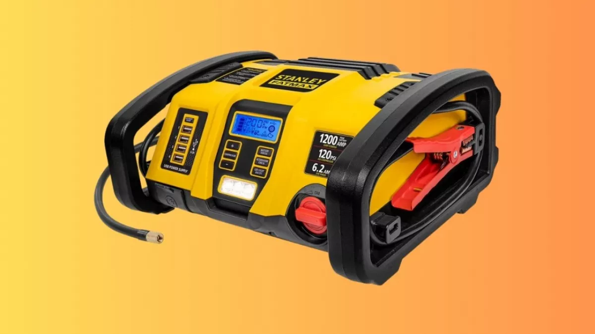 La Stanley Fatmax Professional Power Station è un dispositivo multifunzionale che include un compressore d'aria da 120 PSI, una funzione di avviamento rapido per batterie scariche e porte USB per la ricarica di dispositivi elettronici. È progettata per affrontare emergenze stradali, come pneumatici sgonfi o batterie auto scariche, offrendo una soluzione completa per gli automobilisti.