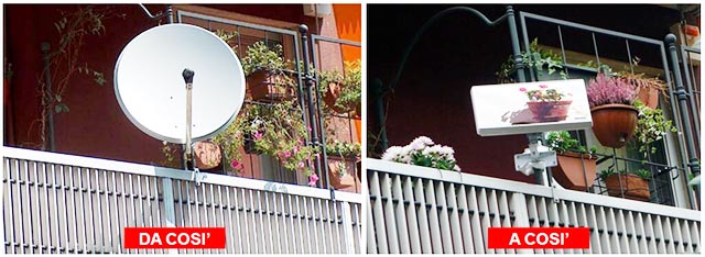 Ad esempio, il regolamento condominiale di un palazzo nel centro storico potrebbe vietare l'installazione delle parabole su balconi e parapetti, mentre in questo contesto l'antenna Selfsat risulterebbe quasi invisibile.